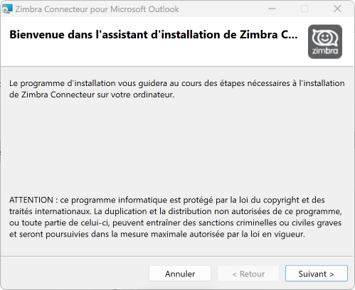 Installer le connecteur Zimbra pour Microsoft Outlook
